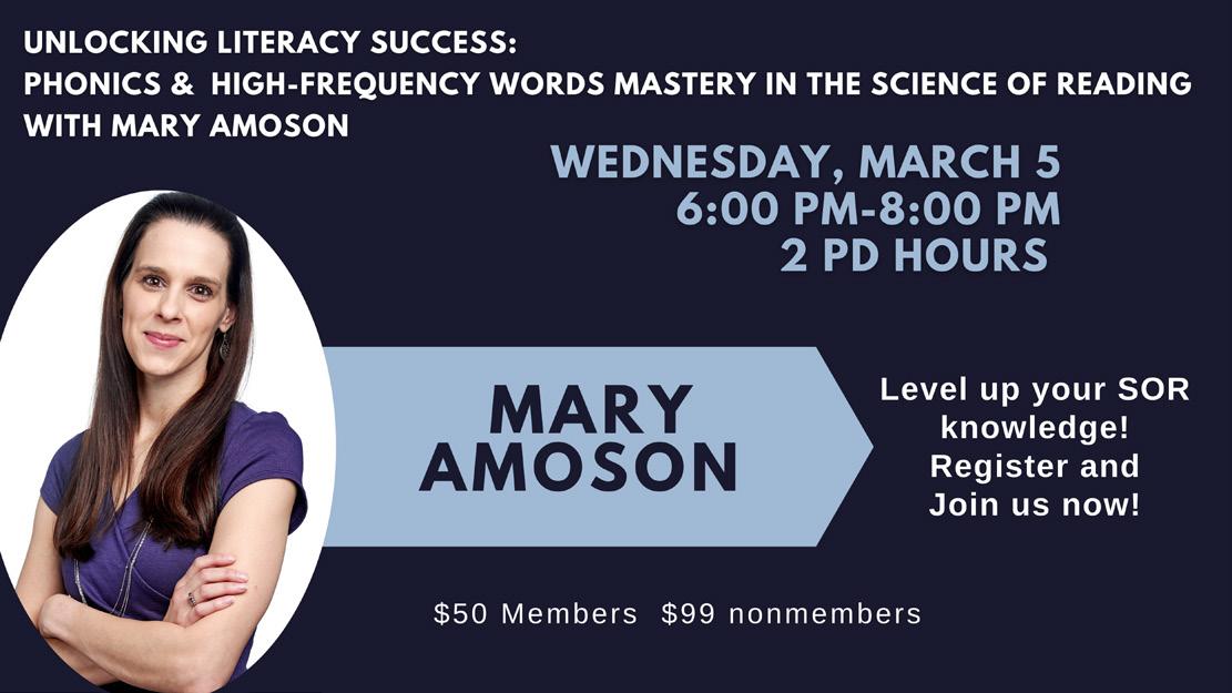 Hour 1 - Phonics Phun -Take advantage of research-supported ideas for developing an awareness of sounds and words in our language. Join Mary to learn how to meet the phonemic needs of your individual learners through movement, sensory activities, exciting technology, and interactive FUN.