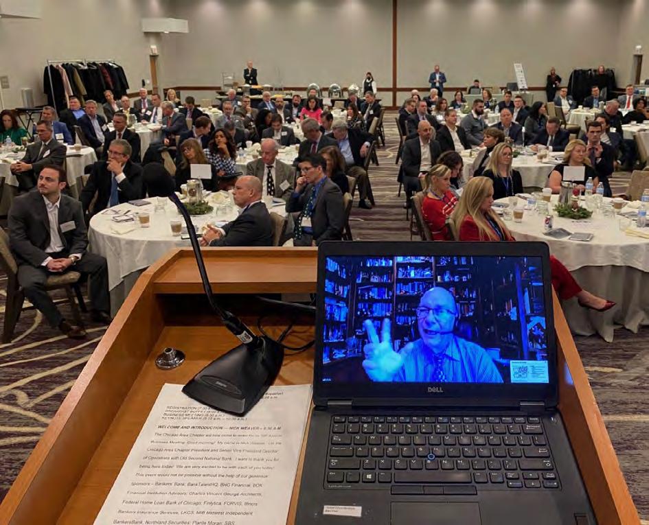 A large crowd of more than 120 Illinois bankers and guests gathered at the Westin Chicago for the annual Chicago Area Chapter Holiday Breakfast. Our keynote speaker, Chris Kuehl, was a trooper who presented his session virtually after being diagnosed with COVID just days ahead of the event. We appreciate his willingness to continue to speak to our audience. This time-honored program continues to be a highlight to see the festive holiday season.