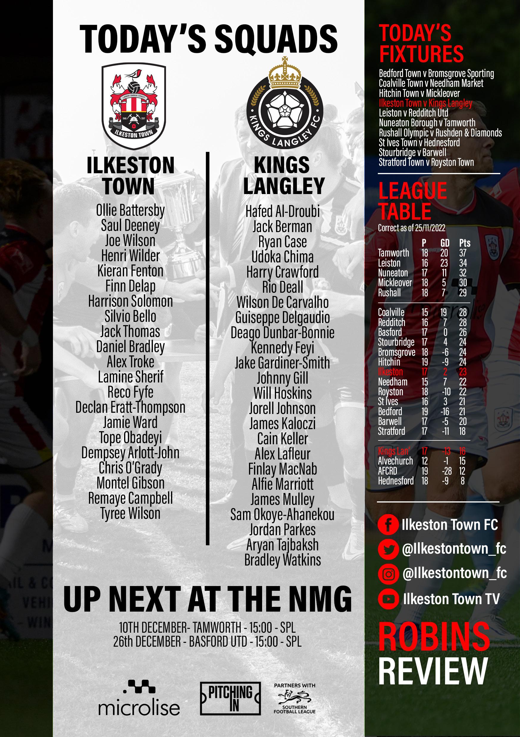 The teams were, Ilkeston Town :- Knibbs, Baker, Darwin, Commander, Smith, Hackland, Disney, Faulcobridge, Marsh,Johnson and Ward.
