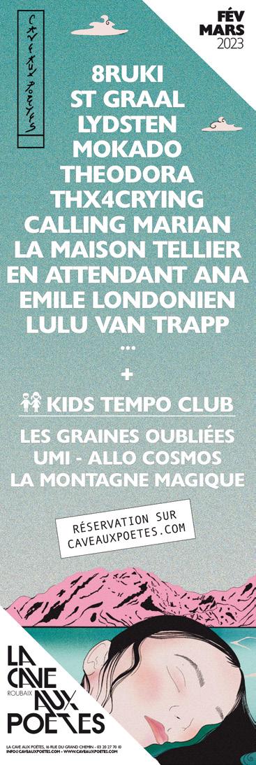 En février, deux grosses soirées se tiendront avant les vacances de vos petiots. La première pétillera sous la pop de ST g RAAL, s’amplifiera sous l’influence des synthés et la voix de THEODORA, avant de se laisser infuser par la douceur de THX4CRyINg. La deuxième sonnera plutôt folk… Fermez les yeux et vous verrez ces magnifiques paysages désertiques apparaître à l’écoute des sons de LA MAISON TELLIER. Enfin, vous plongerez dans l’univers si attachant d’OH! TIg ER MOUNTAIN et de sa voix grave oscillant entre balades electro-folk et chansons psyché-rock.