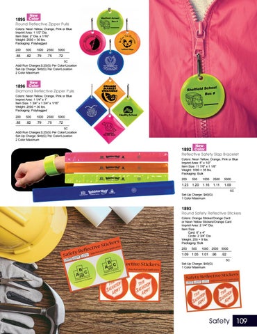Round Reflective Zipper Pulls Colors: Neon Yellow, Orange, Pink or Blue Imprint Area: 1 1/2” Dia. Item Size: 2” Dia. x 1/16” Weight: 2500 = 30 lbs. Packaging: Polybagged 200