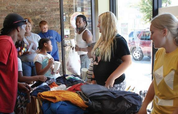 And that’s what they did. The students met with planters in North Side, South Side, and Near West neighborhoods. They painted and landscaped at public school facilities (see photo above), distributed food and clothes to residents in need, and talked with strangers about their faith.