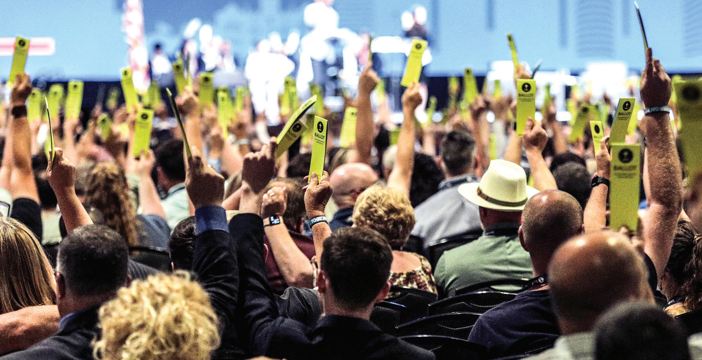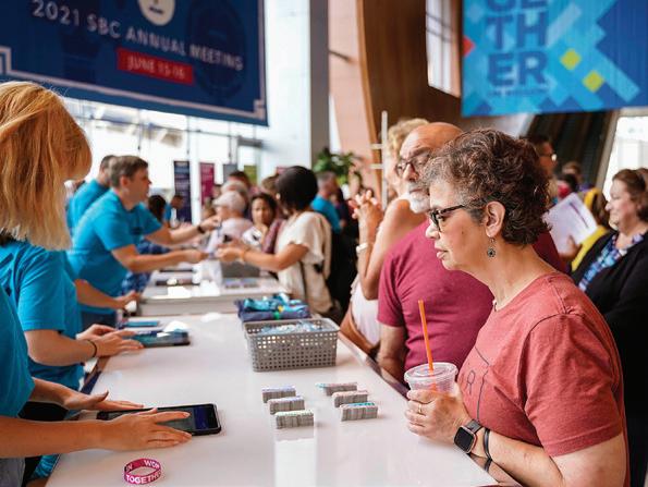 Messengers’ voices were heard in Nashville. Capacity attendance at the Music City Center combined with pre-convention debate over key issues caused organizers to add agenda time for more motions, resolutions, floor discussion, and (photo above) ballot votes.