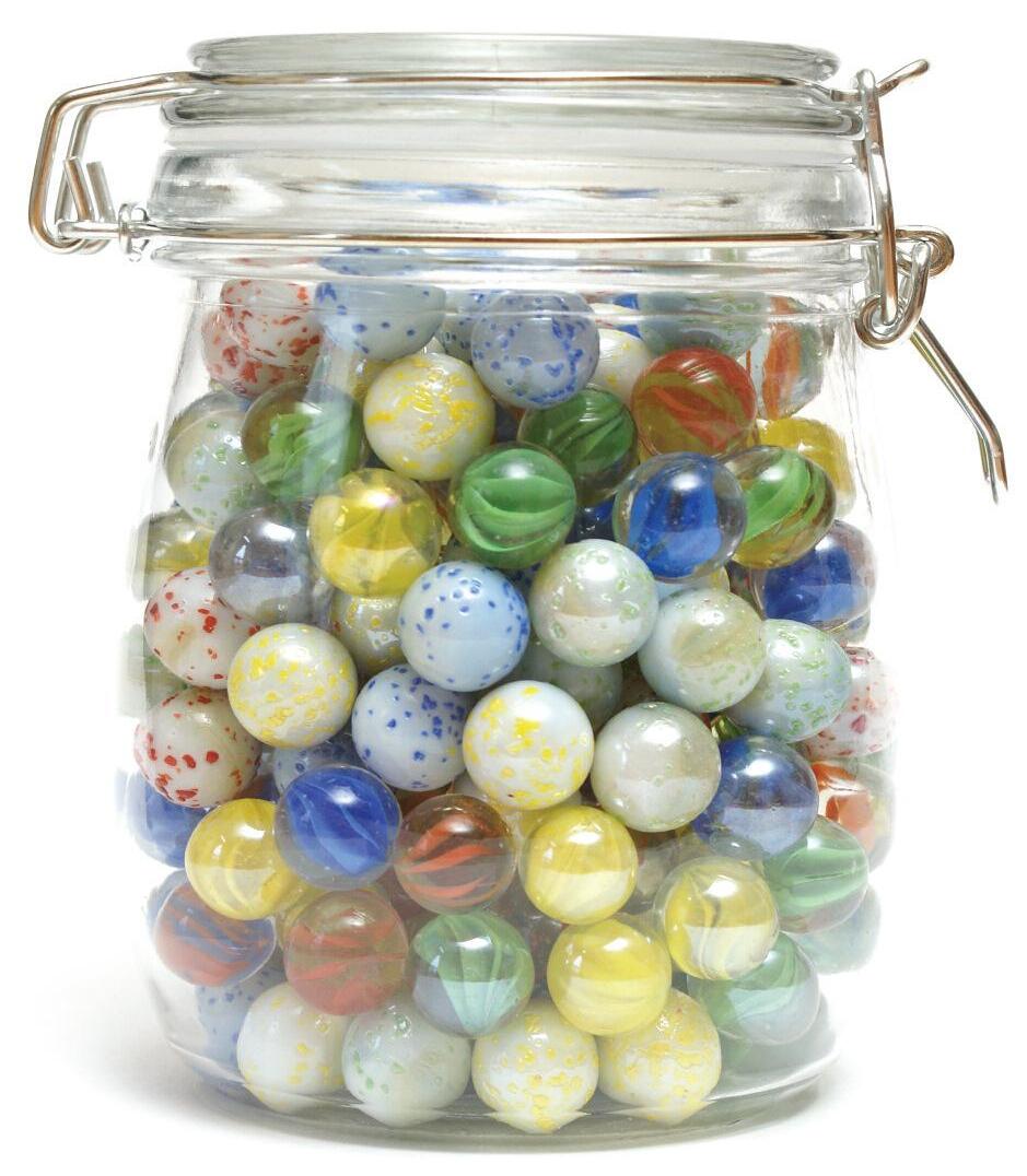 2 glass jars and 1 bag of marbles