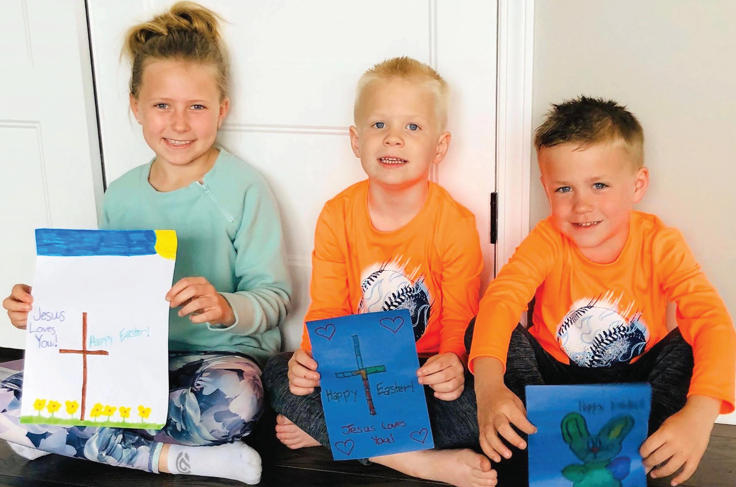 WELL-WISHERS – Finley, Owen, and Grant Gajewski are among the kids in Nashville, Ill., participating in Lighthouse Community Church’s adopt-a-grandparent initiative. Through the ministry, kids have committed to send letters, cards, and handmade gifts to dozens of seniors at two local nursing facilities.