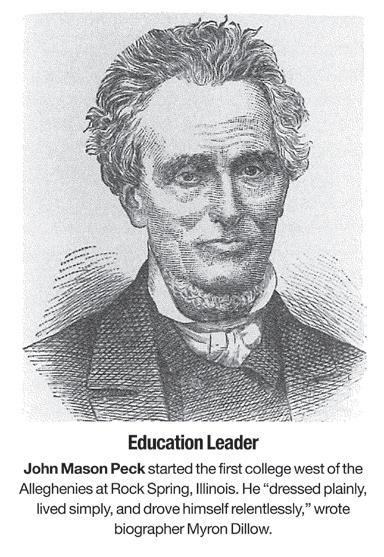 John Mason Peck is sometimes called “the forgotten man” in Illinois’ early Baptist history. Peck started the first college west of the Alleghenies at Rock Spring, Illinois. He “dressed plainly, lived simply, and drove himself relentlessly,” wrote biographer Myron Dillow.