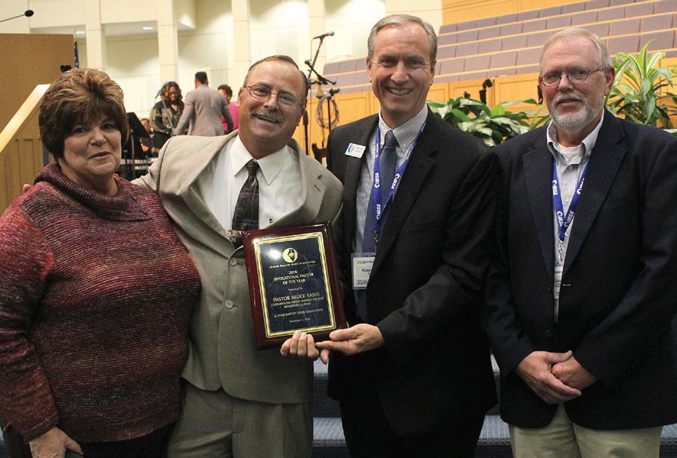 Springfield Southern Baptist Church honored their pastor, Mike Keppler, on Nov. 6 for 25 years of service at the church. IBSA Executive Director Nate Adams and Capital City Baptist Association Director of Missions David Howard were on hand for the celebration of Pastor Keppler and his wife, Monique