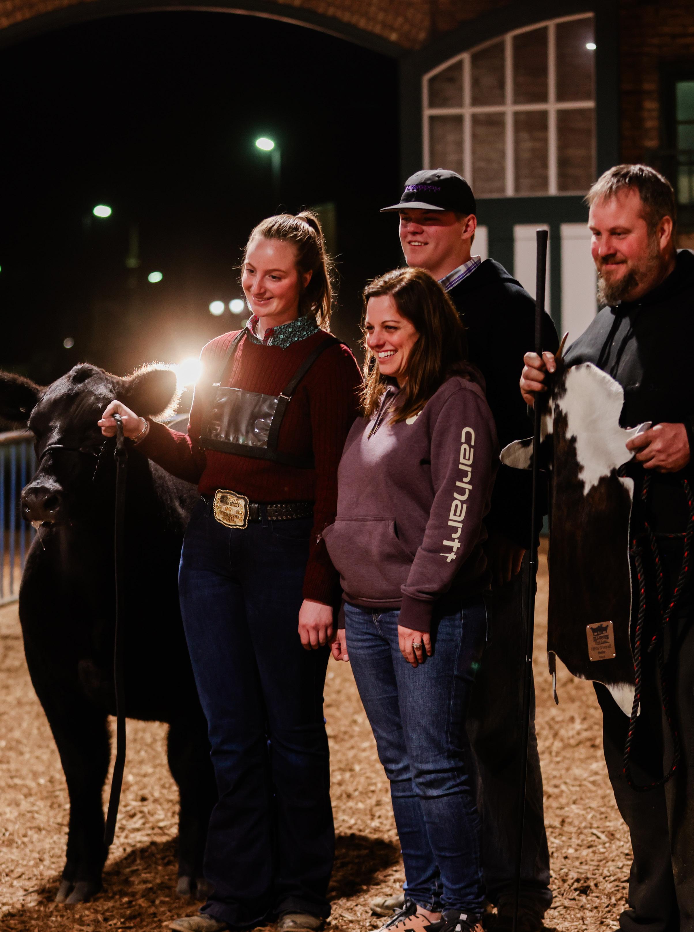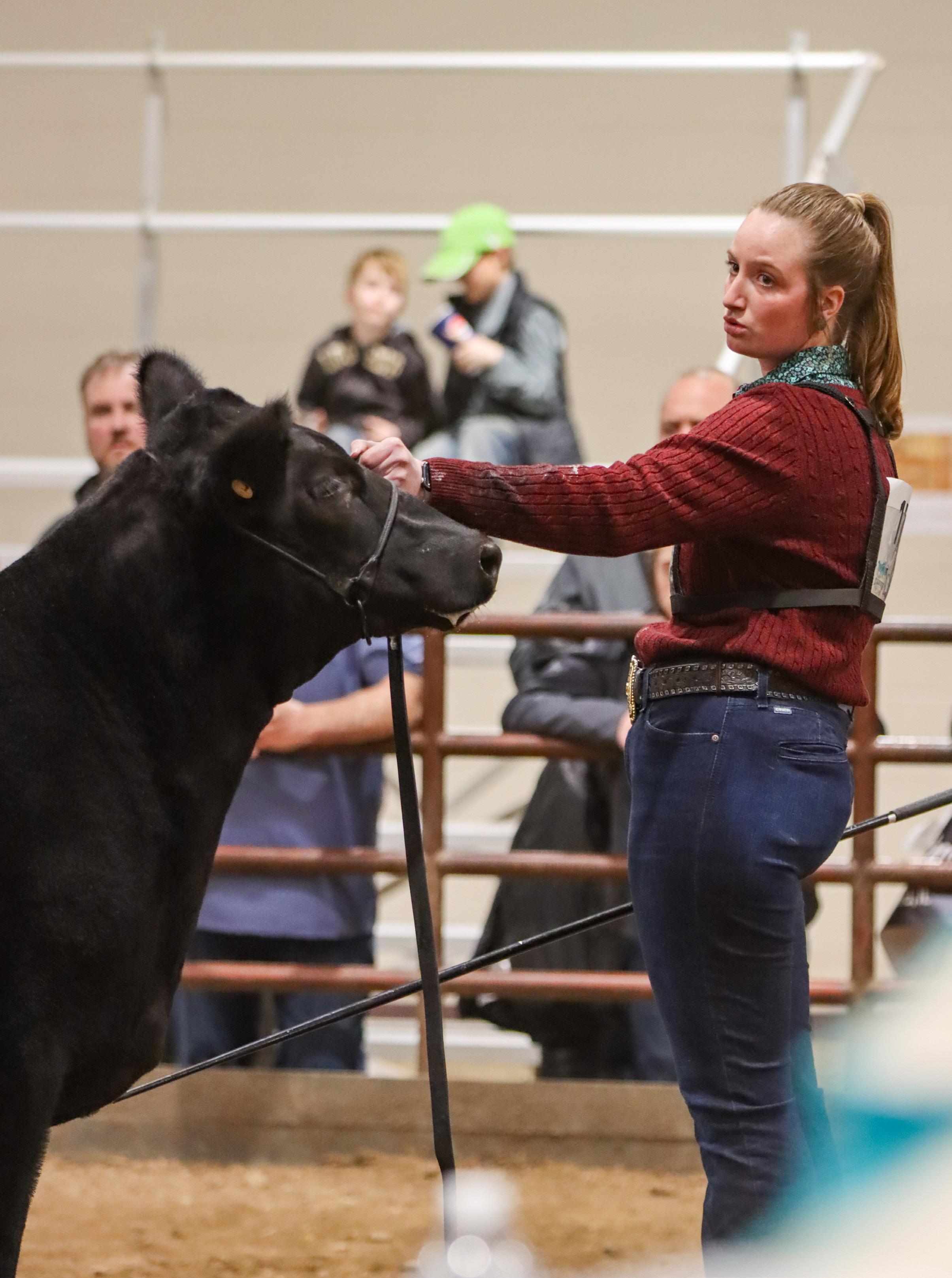 Photo of Chloe Boitnott and her Champion Angus Heifer and 5th overall in Ring A at Illinois Beef Expo. Taken by Devin Bollman.