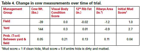 considered these factors and considered them for three management groups of cows for this research trial. Starting in early December, two groups of black Angus-typed cattle due to calve mid-March were wintered in Ames, Iowa, and another similar group of cows up in Chariton, Iowa. The cow groups were each divided in half, to either a swath grazing protocol or feedyard, with some form of shelter provided. Cattle were all maintained within their respective environments through the first week of March. Initial cow data can be found in Table 1.