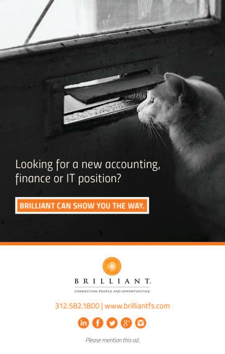 INSIGHT is the official magazine of the Illinois CPA Society, 550 W Jackson, Suite 900, Chicago, IL 60661, USA Its purpose is to serve as the primary news and information vehicle for some 24,000 CPA members and professional affiliates Statements or articles of opinion appearing in INSIGHT are not necessarily the views of the Illinois CPA Society The materials and information contained within INSIGHT are offered as information only and not as practice, financial, accounting, legal or other professional advice Readers are strongly encouraged to consult with an appropriate professional advisor before acting on the information contained in this publication It is INSIGHT’s policy not to knowingly accept advertising that discriminates on the basis of race, religion, sex, age or origin The Illinois CPA Society reserves the right to reject paid advertising that does not meet INSIGHT’s qualifications or that may detract from its professional and ethical standards The Illinois CPA Society does not necessarily endorse the non-Society resources, services or products that may appear or be referenced within INSIGHT, and makes no representation or warranties about the products or services they may provide or their accuracy or claims The Illinois CPA Society does not guarantee delivery dates for INSIGHT The Society disclaims all warranties, express or implied, and assumes no responsibility whatsoever for damages incurred as a result of delays in delivering INSIGHT INSIGHT (ISSN-1053-8542) is published four times a year, in Spring, Fall, Fall, Winter, by the Illinois CPA Society, 550 W Jackson, Suite 900, Chicago, IL 60661, USA , 312 993 0407 or 800 993 0407, fax: 312 993 7713 Copyright © 2016 No part of the contents may be reproduced by any means without the written consent of INSIGHT Permission requests may be sent to: Publications Specialist, at the address above Periodicals postage paid at Chicago, IL and at additional mailing offices POSTMASTER: Send address changes to: INSIGHT, Illinois CPA Society, 550 W Jackson, Suite 900, Chicago, IL 60661, USA