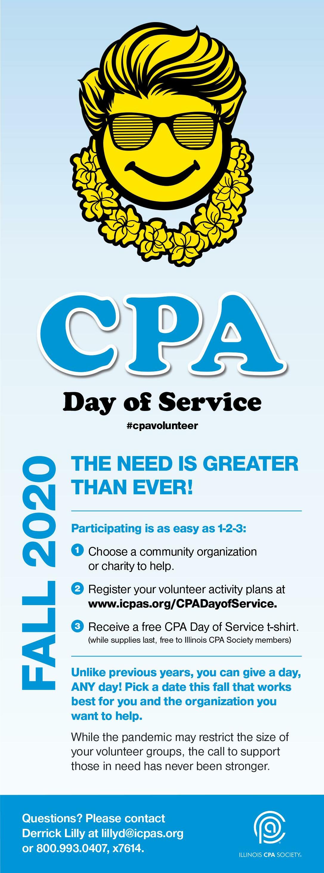 We need your expertise and leadership to help us reach our goals and enhance the accounting profession. Visit www.icpas.org/volunteer to browse current volunteer opportunities and apply to those that match your interest and skillset, from short term projects to committee, advisory council and chapter service.