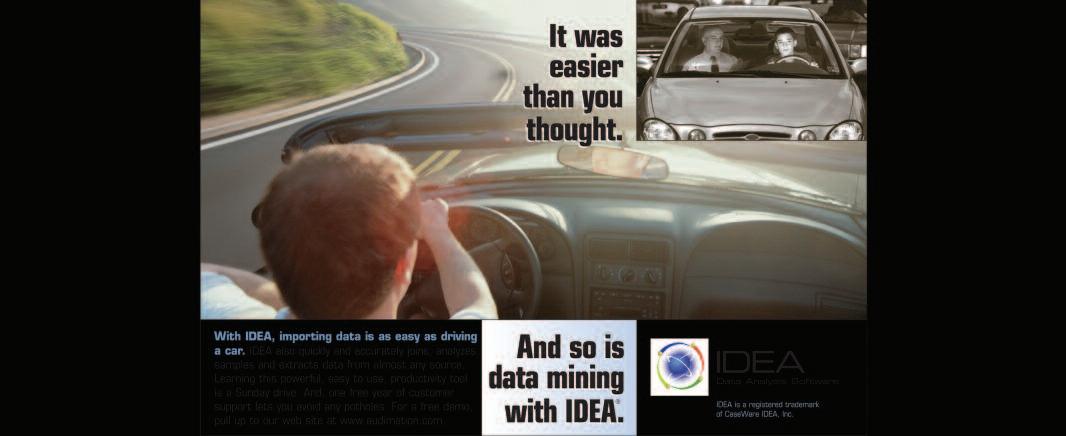 INSIGHT is the official magazine of the Illinois CPA Society, 550 W Jackson, Suite 900, Chicago, IL 60661, USA Its purpose is to serve as the primary news and information vehicle for some 23,000 CPA members and professional affiliates Statements or articles of opinion appearing in INSIGHT are not necessarily the views of the Illinois CPA Society The materials and information contained within INSIGHT are offered as information only and not as practice, financial, accounting, legal or other professional advice Readers are strongly encouraged to consult with an appropriate professional advisor before acting on the information contained in this publication It is INSIGHT’s policy not to knowingly accept advertising that discriminates on the basis of race,religion, sex, age or origin
