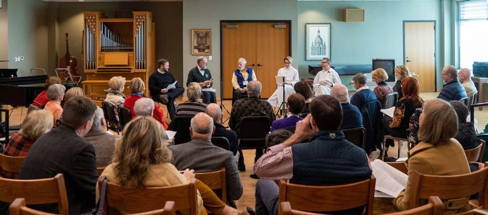 Later gifts by Gene and Cassie Bledsoe, Paul and Luann Welch, Scott and Rebecca Tankersley, Bob Drotman, and the Endowment of Transfiguration, along with additional gifts by the Culvers and Martins, funded the creation of the seven stunning cases that house the volumes in our Gathering Space. This allows us to permanently display our Heritage Edition, so anyone visiting Transfiguration can encounter the Word of God in magnificent beauty. I look forward to a service of dedication on May 7, and to countless future opportunities to spark the spiritual imaginations of members and visitors through these volumes.