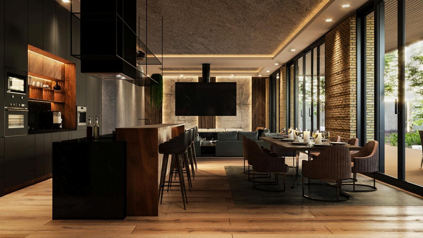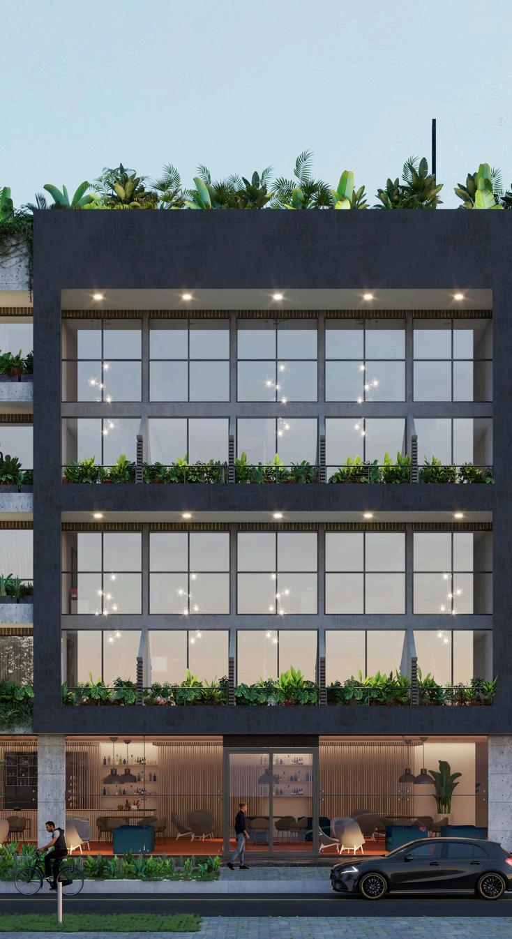 La cautivadora fachada, inspirada en las corrientes artísticas del brutalismo, el estilo industrial y el diseño contemporáneo, crea una presencia imponente que desafía las convenciones tradicionales Volúmenes sólidos y líneas limpias se entrelazan con materiales nobles, forjando un lienzo arquitectónico que celebra la audacia y la sofisticación.