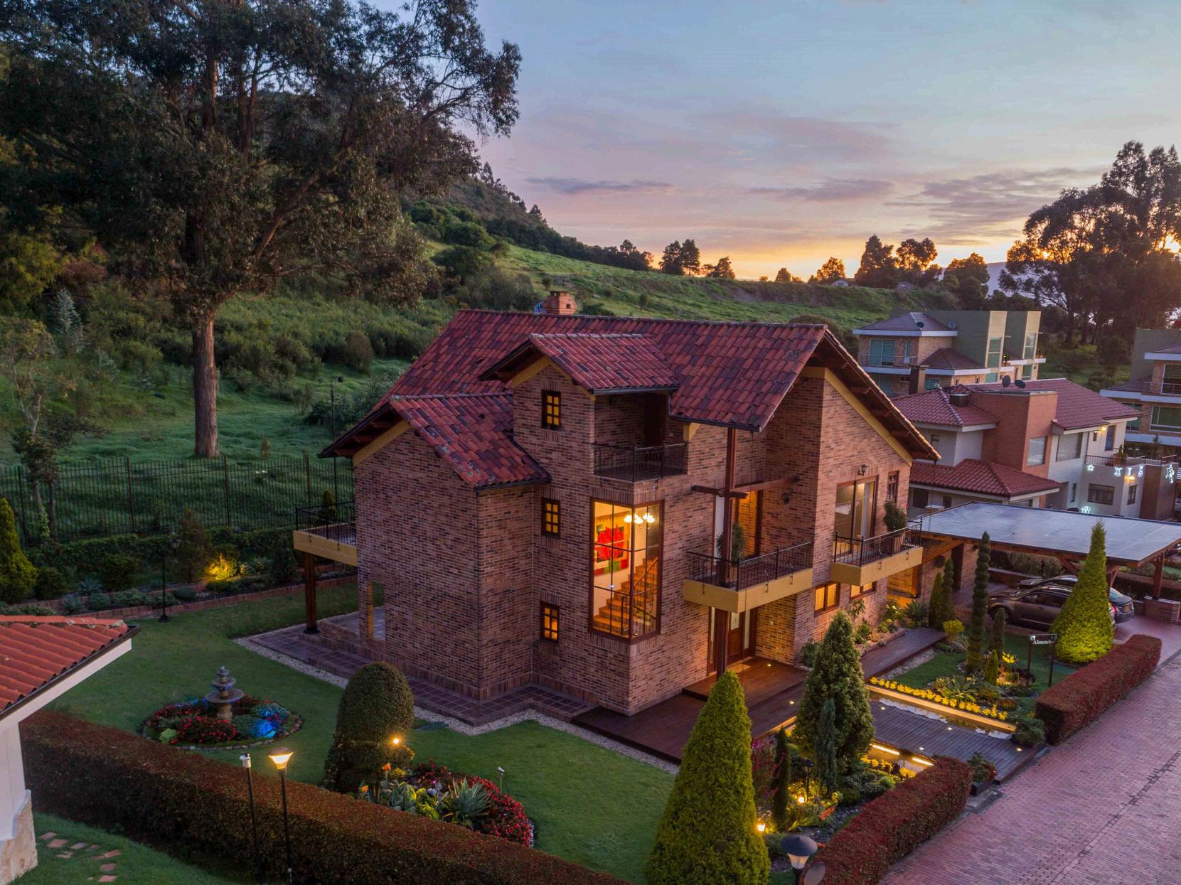 La lujosa residencia, adornada con cálidos ladrillos terrosos y coronada con un techo de tejas de terracota, es un testimonio de una vida refinada y un diseño sofisticado