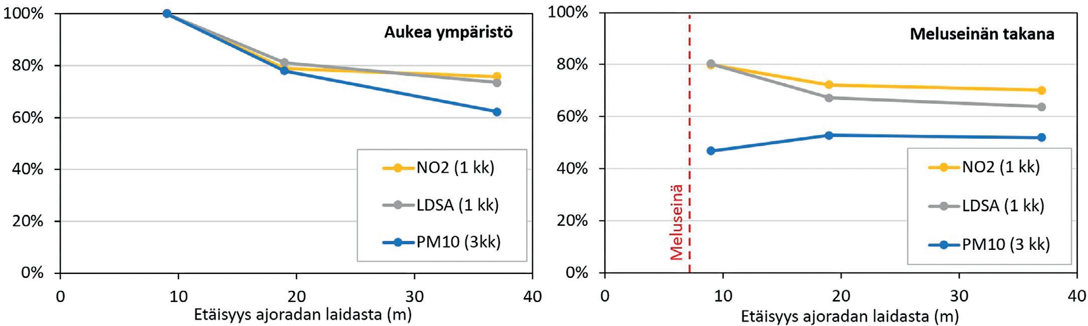 ILMANSAASTEIDEN PITOISUUDET pääväylän ja meluseinän läheisyydessä s. 16