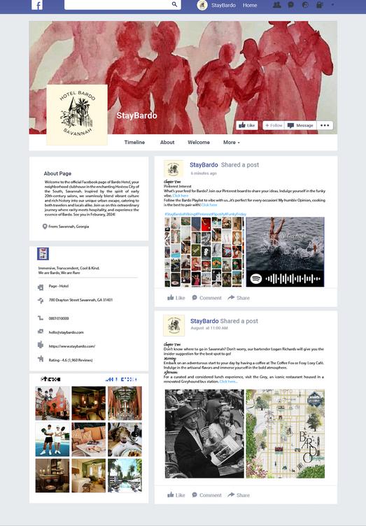 Immersive visuals, interactive elements, storytelling Events: collaborations with SCAD, staff stories, newspaper article appearances, social media involvement (Pinterest, twitter, Instagram, Spotify), a map of the hotel surroundings