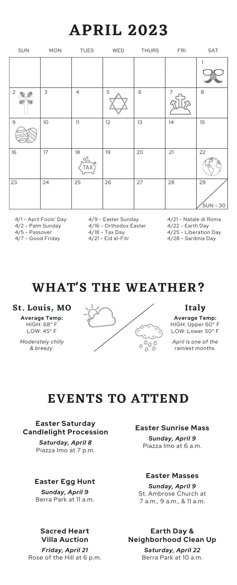 Member of FUSIE (Federazione Italiana Stampa Unitaria all’Estero) Office: 10001 Stonell Drive St. Louis, Missouri 63123 THE ONLY ITALIAN NEWSPAPER PUBLISHED IN THE STATE OF MISSOURI CONTINUOUS SERVICE AND ACTIVITY SINCE 1904 Aprile 2023 NUMERO 4 12 PAGES
