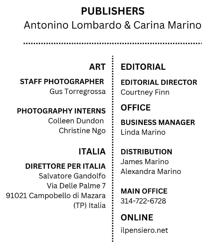 The signed articles appearing in Il Pensiero “The Thought” are the opinions of the individual authors, who do not represent the general point of view, nor do they express the views of Il Pensiero. We accept the collaboration of people expressing the most wide range of opinions. Opinions expressed in Il Pensiero “The Thought” are not necessarily those of Il Pensiero and Il Pensiero does not accept responsibility for advertising content. Any images supplied are at the owner’s risk.