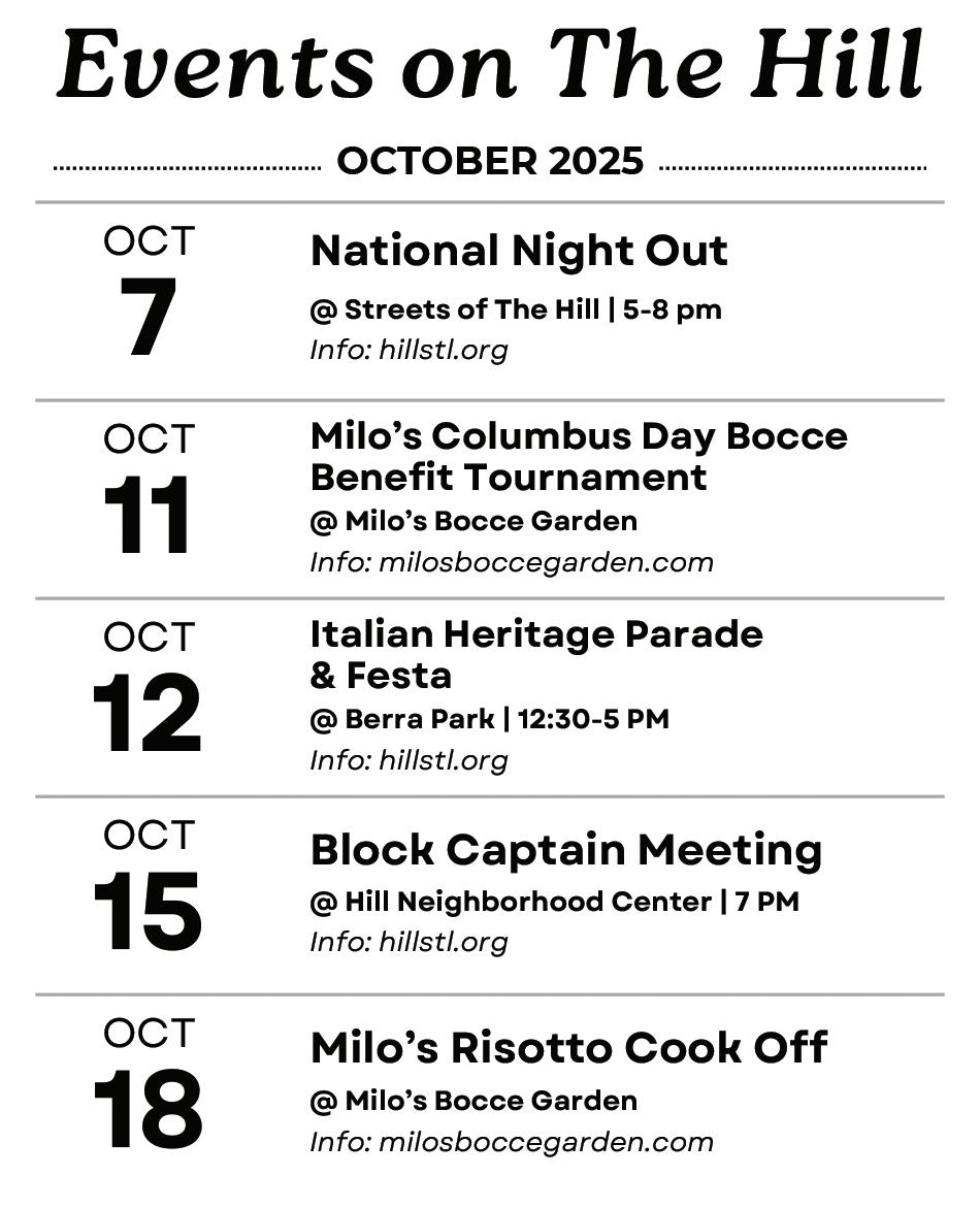 This year’s honorees remind us why The Hill feels less like a neighborhood and more like a family. Be sure to join the celebration and cheer them on at the 2025 Parade & Festa happening October 12, 2025 at Berra Park from 12:30 to 5 p.m. Find more information about the event at hillstl.org.