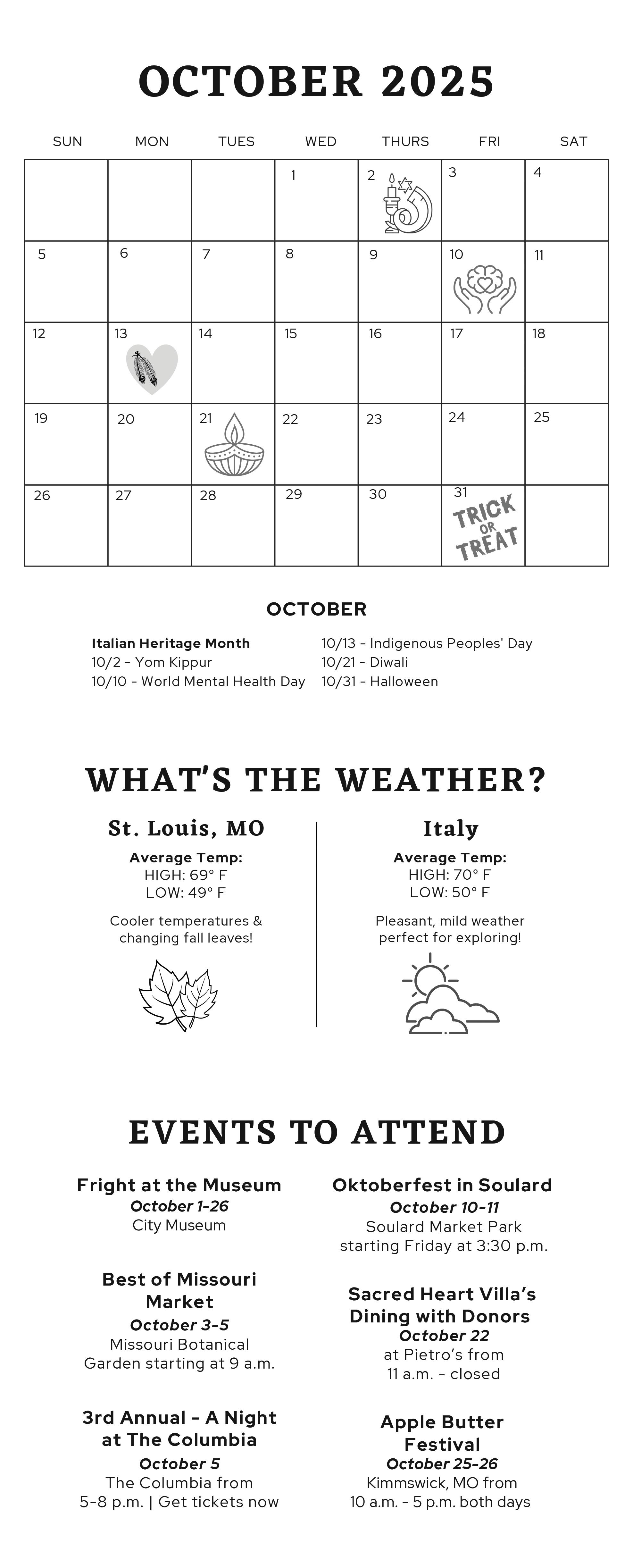 October is Italian Heritage Month, and there’s no better place to celebrate than right here in St. Louis’s—The Hill neighborhood. From food to history, The Hill offers numerous ways to celebrate Italian culture and community.