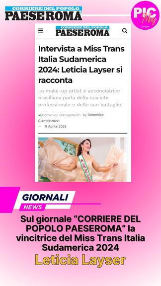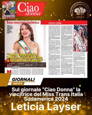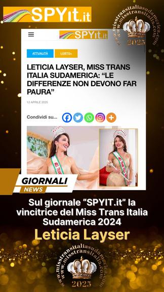 Grazie mille al Miss Trans Italia Sudamerica per l’opportunità e vi assicuro che darò tutto di me per crescere sempre e rappresentare al meglio la nostra classe e specialmente per dimostrare che anche noi abbiamo uno spazio in questo mondo!