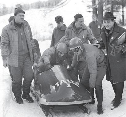 gelosamente tra i miei ricordi più cari, fatta quando un importante amico di mio padre aveva pilotato quel mezzo. Remo ci invitò alla premiazione, era arrivato terzo, ci fece conoscere il grande Eugenio Monti, vincitore della gara, già un mito di quello sport. Di quei momenti ho solo un vago ricordo insieme al grande fermento che c’era. Come palmares (Wikipedia aiuta), Remo Mosa nato a Gadesco-Pieve Delmona nel 1930 e qui scomparso nel 1995, vinse la medaglia d’argento ai Campionati Europei a Cortina nel 1965 e fu due volte riser va della Nazionale ai Giochi Olimpici di Innsbruck nel 1964 e di Grenoble nel 1968. Partecipare alle Olimpiadi, anche se in qualità di riserva, è importante: una squadra è sempre una squadra! Ai Campionati italiani vinse un bronzo con il bob a quattro nel 1969 e due bronzi con il bob a due nel 1967 e 1969. Guardo la foto ricordando i due (Remo e Albino), ora che sono entrambi scomparsi, con quella piacevole e significativa esperienza vissuta.