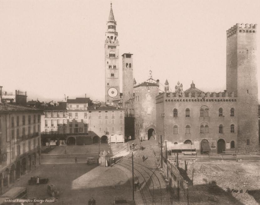 centro del progetto; ancora oggi, quegli edifici affacciano su Piazza Stradivari. Un altro grande sventramento fu seguito dall’erezione di Palazzo dell’Arte: per farvi posto, si procedette alla distruzione della chiesa di Sant’Angelo, del chiostro e degli edifici contermini». Caduto il fascismo, anche a Cremona si presentò il problema della