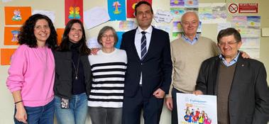 Alceste Bartoletti e Palmiro Fanti , presidente e vice presidente di Anap, accompagnati dal direttore del Centro Commerciale Cremona Po, Fabio Zanelli , hanno incontrato i bambini della quinta A della scuola primaria “Canossa” di Cremona, una delle scuole che hanno aderito al progetto, per illustrare l’importante iniziativa benefica e per prepararli al compito che saranno chiamati a svolgere. In un contesto di pluralità culturale e religiosa, l’azione educativa della scuola Canossa è finalizzata soprattutto all’inclusione.