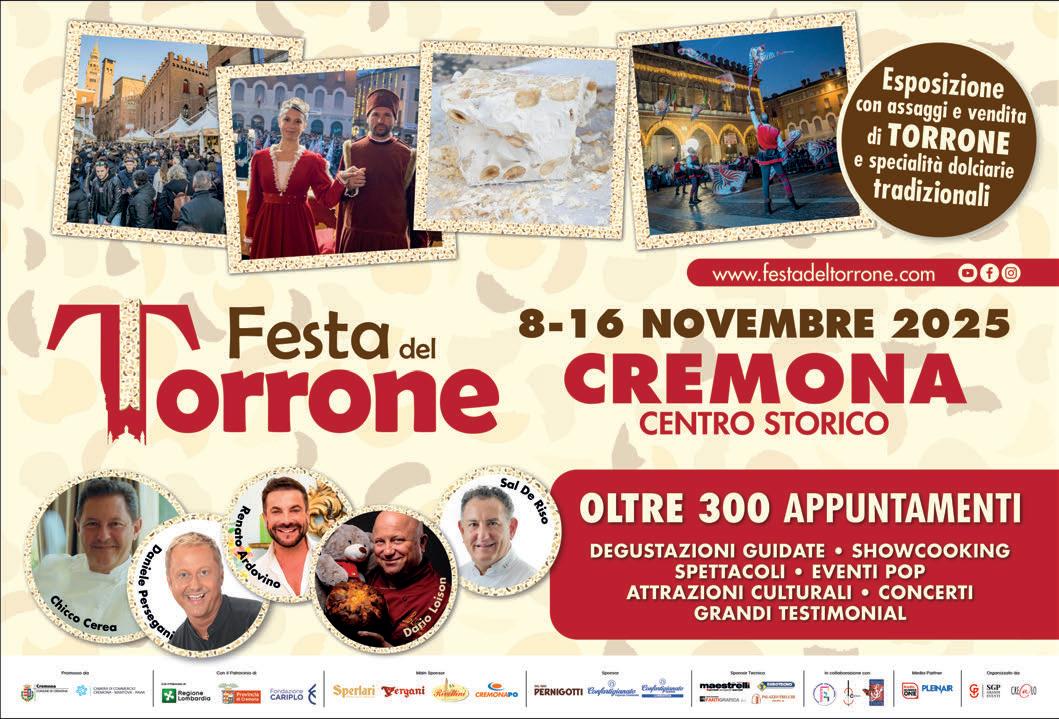 Torna a Cremona, dall’8 al 16 novembre, la tradizionale Festa del Torrone, un appuntamento di richiamo nazionale che celebra l’eccellenza enogastronomica e le radici culturali di un territorio ricco di storia, cultura e tradizioni. L’edizione di quest’anno, presentata a Palazzo Lombardia, è interamente dedicata alla musica, un omaggio vibrante alla rinomata tradizione liutaria cremonese, riconosciuta in tutto il mondo, ma anche un tributo a Mina , protagonista di un originale jingle dedicato al torrone che si potrà ascoltare con apposite cuffie in distribuzione ai visitatori. Le sette note faranno da filo conduttore a un ricco programma che spazierà dalle degustazioni ai grandi spettacoli, dalle installazioni artistiche a momenti culturali di alto profilo.