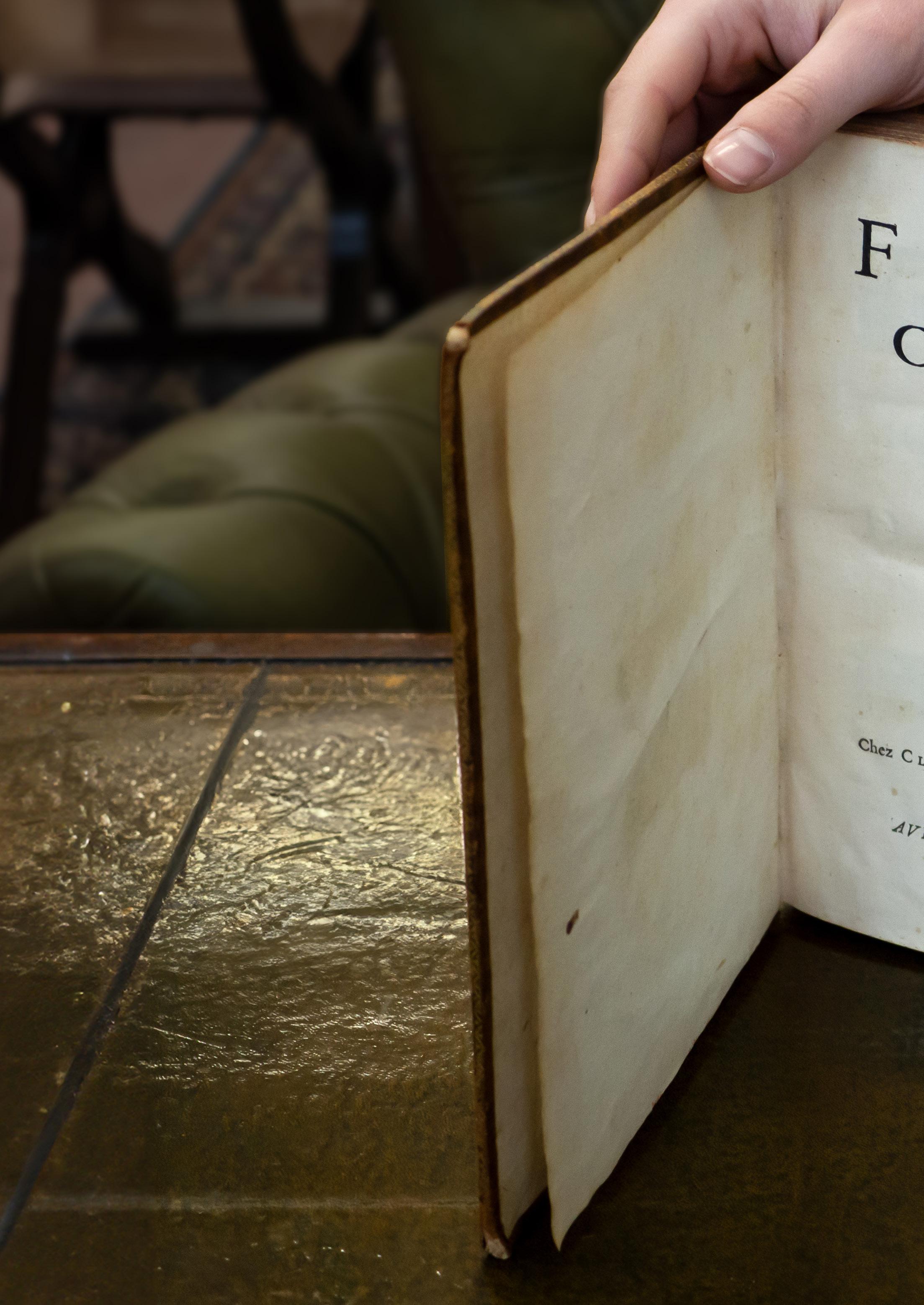 Exceptionnellement conservé, cet ouvrage n’est pas seulement une rareté pour les connaisseurs : c’est un chef-d’œuvre littéraire qui, à travers les siècles, a contribué à forger l’identité nationale française. Imprimé par Claude Barbin, qui partageait le privilège royal avec Denis Thierry, cet exemplaire en vente se distingue non seulement par son unicité, mais aussi par son rôle crucial dans l’histoire culturelle française. Dédiée par La Fontaine au fils aîné de Louis XIV, cette première édition est rapidement devenue une lecture incontournable, consacrant son auteur parmi les grandes figures du classicisme français. Depuis 1870, ses fables font partie intégrante de l’éducation scolaire, transmettant, par la métaphore animalière, des valeurs universelles. De plus, les gravures de Chauveau, qui collabora avec des figures telles que Racine, Corneille et Molière, fusionnent magnifiquement art et littérature.