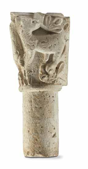 Arte del secolo XVI. Due elementi architettonici frammentari in pietra scolpita a bassorilievo con angelo reggicero e parte di candelabra (h. cm 81; h. cm 86) (difetti)
