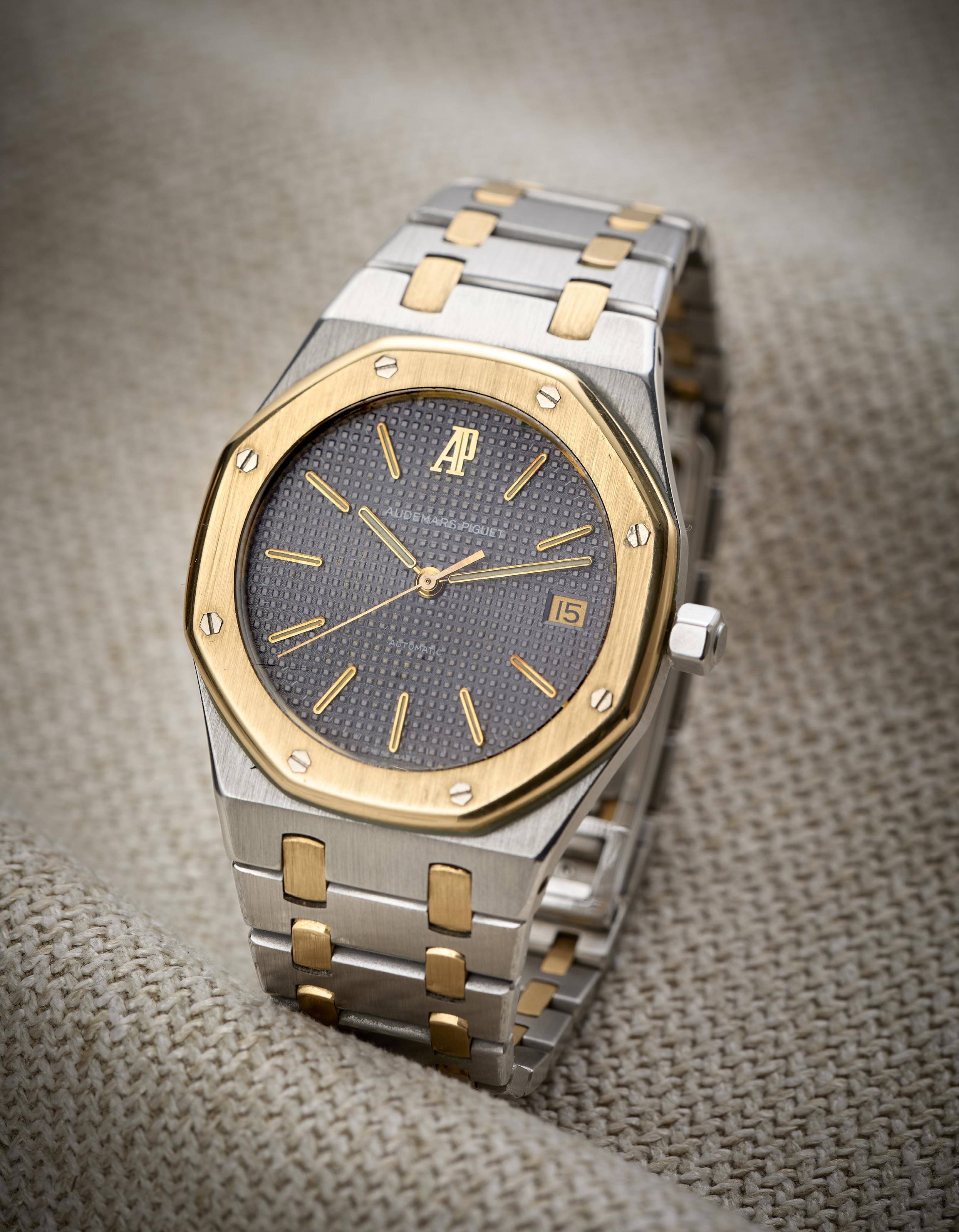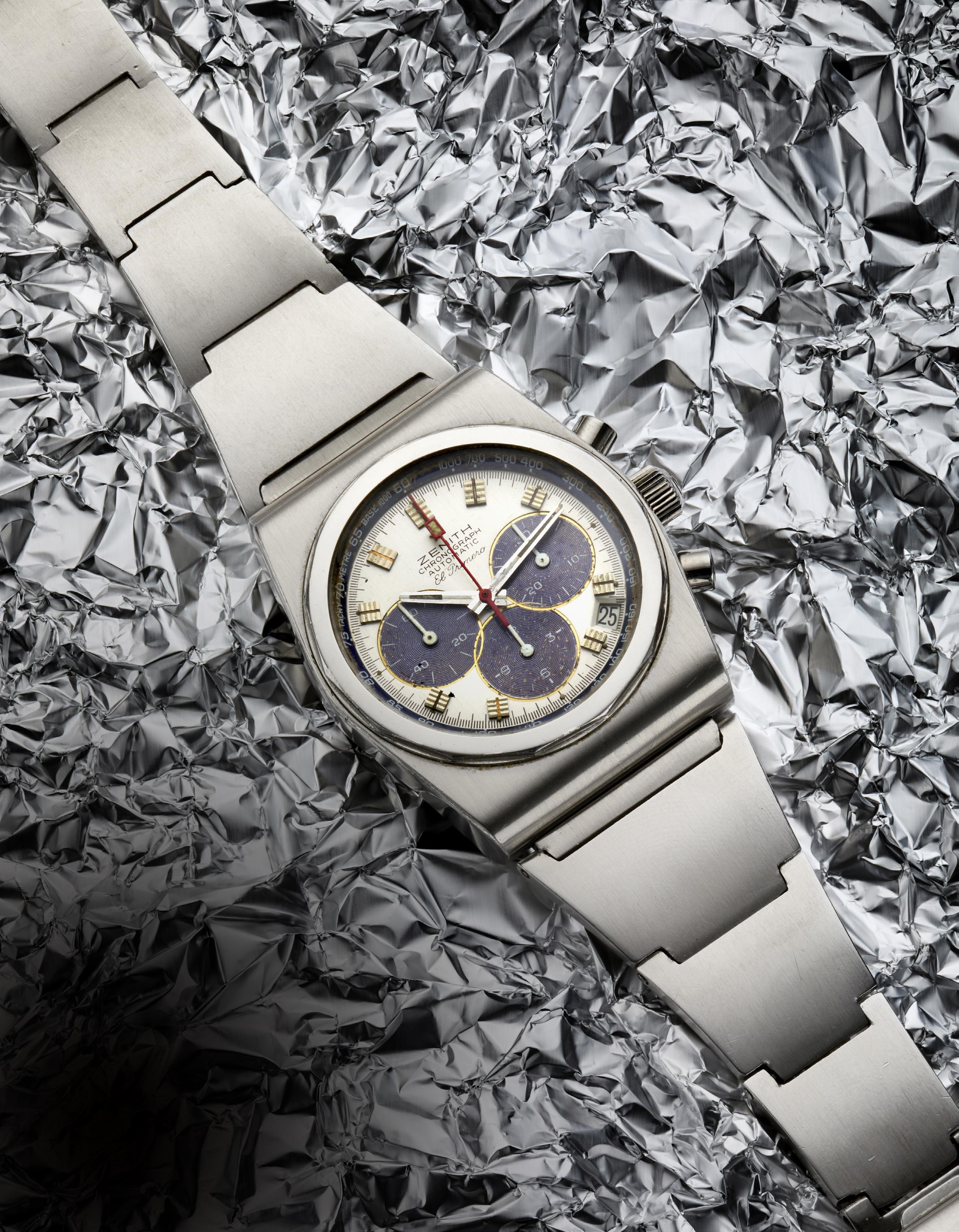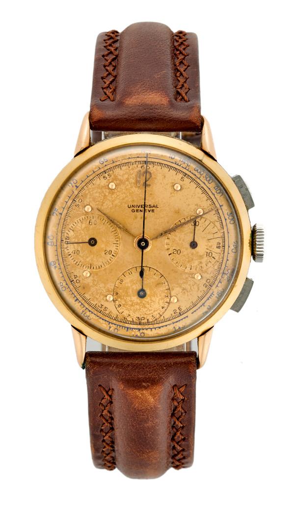 Quadrante bianco con numeri romani e finestra per iconografia con cinque scene su disco rotante
