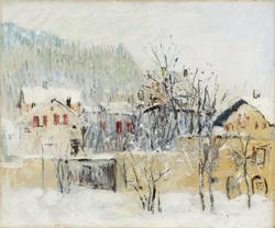 "Giornata grigia a Montemagno" tecnica mista su carta (cm 55x37) firmato in basso a sinistra al retro: cartiglio con titolo in cornice (difetti)