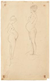 "7 mois" carboncino su carta (cm 44x27) titolato in alto a destra e reca timbro dell'Atelier Zandomeneghi in basso a sinistra in cornice (difetti)