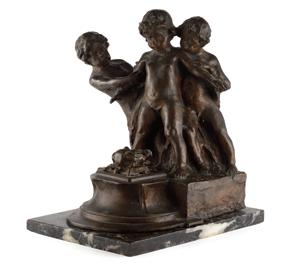 "I tre fanciulli" scultura in bronzo con calamaio su base in marmo (cm 30x20x25) firmata a sinistra (lievi difetti)