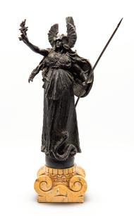 scultura in bronzo su base in marmo giallo siena (cm h 55) firmata al retro e titolata al fronte della base (difetti)