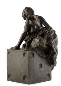 "Un gioco d’azzardo" scultura in bronzo (cm 35x20x22) firmata alla base (difetti)
