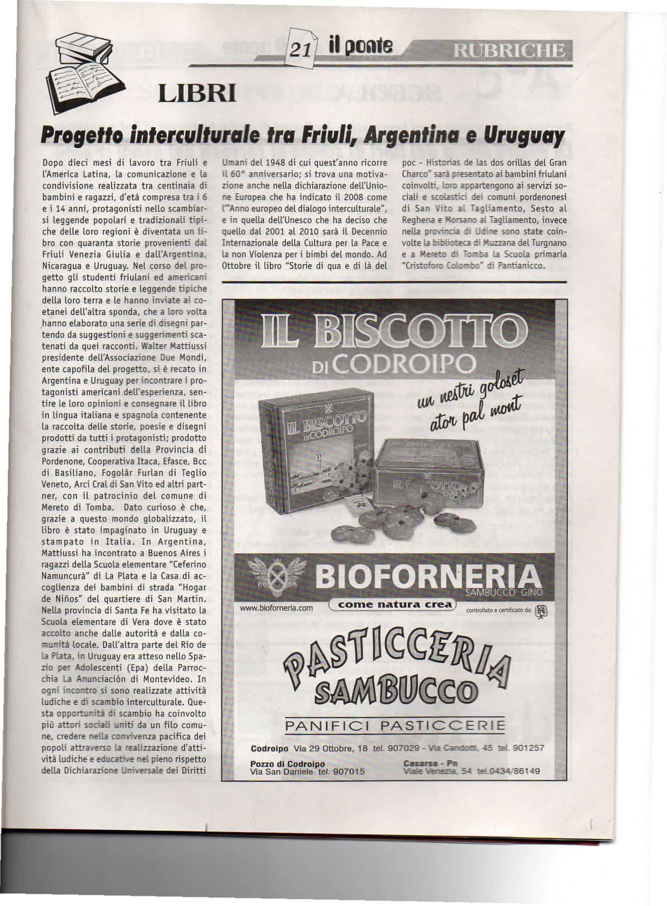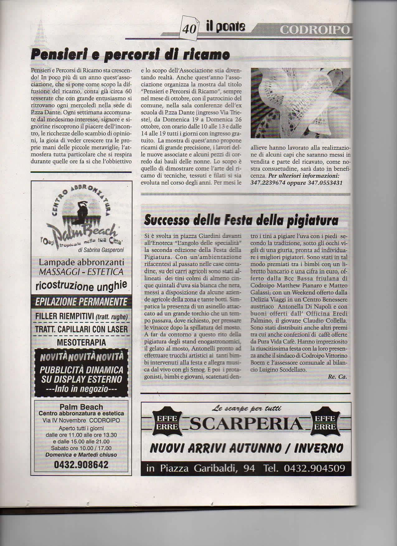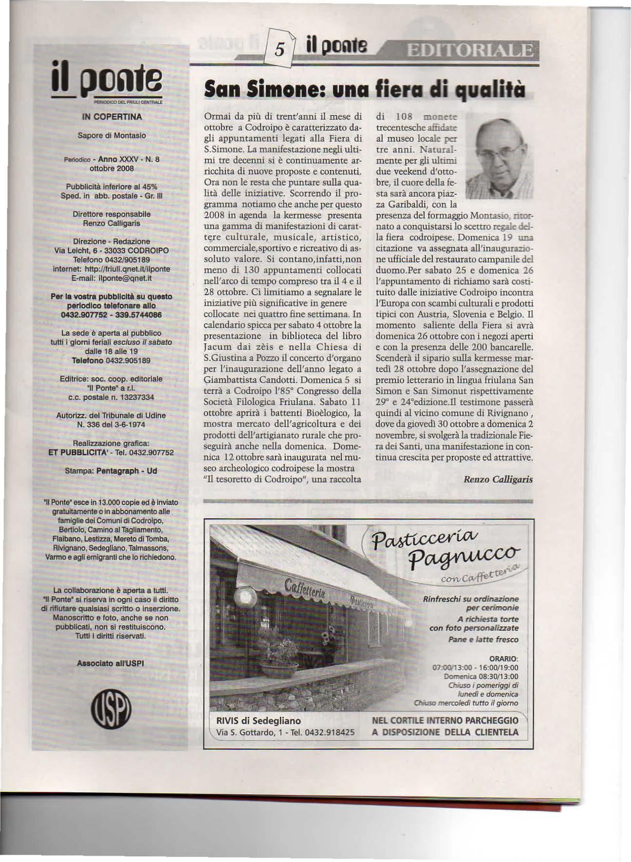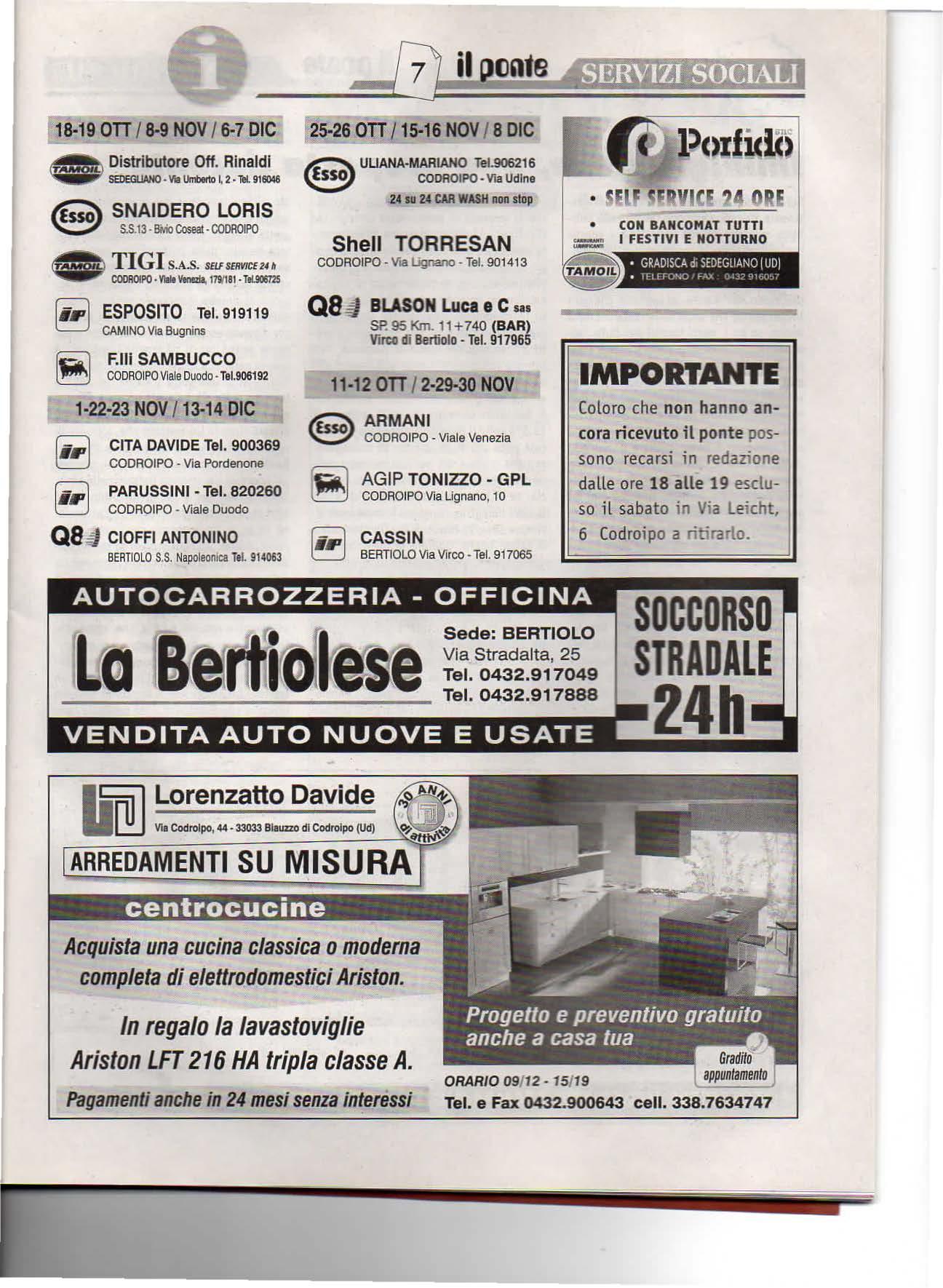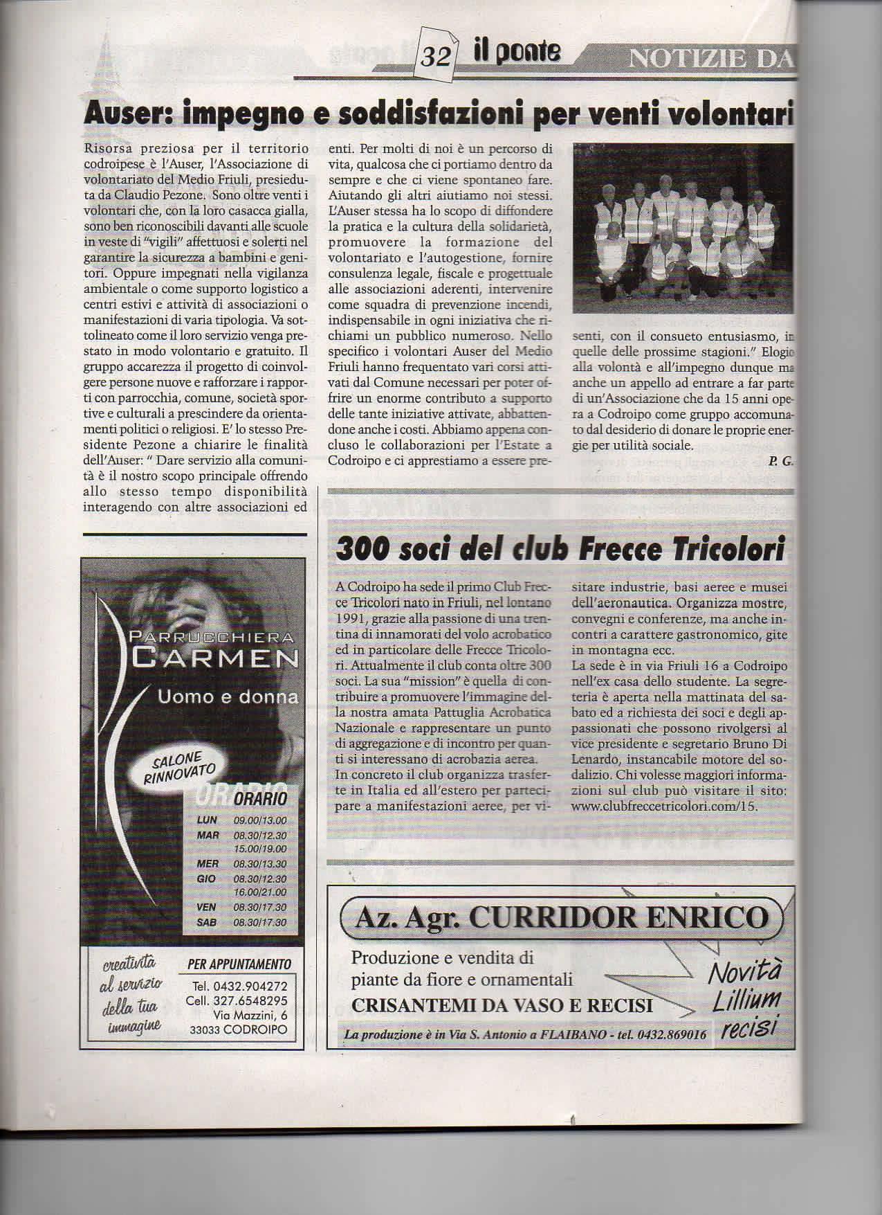 'Il Ponte• esce In 13.000 copie ed è Inviato gratuitamente o In abbonamento alle famiglie del Comuni di Codroipo, Bertiolo, Camino al Tagliamento , Aalbano, Mereto di Tomba, Rivignano, Sedegliano, Talmassons, varmo e agli emigranti che lo richiedono.