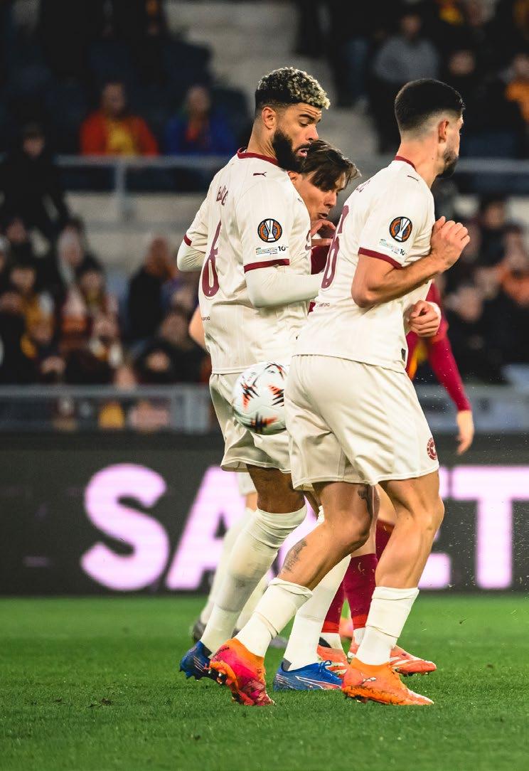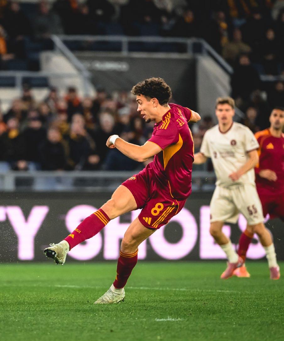 Svilar 6; Ghilardi 6,5, Ndicka 6,5, Mancini 6,5; Celik 7 (33’ st Tsimikas 6), El Aynaoui 7,5, Koné s.v. (27’ pt Cristante 6), Wesley 5,5; Soulé 6,5 (16’ st Ferguson 6), Pellegrini 6,5 (16’ st El Shaarawy 7); Dybala 6 (33’ st Bailey 6)