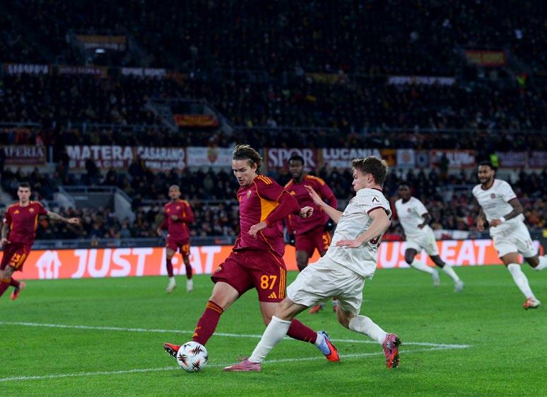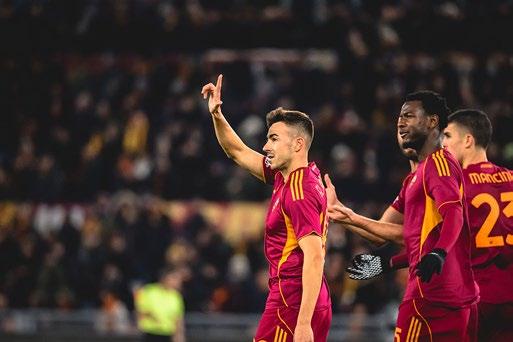 mista si dice «abbastanza emozionato» e aggiunge: «Sono contento, più che per la prestazione individuale, per la prestazione di squadra, perché la vittoria è molto importante». Il difensore svela che nello spogliatoio non si parla dell’eventualità di arrivare in fondo alla competizione, ma «l’obiettivo è quello: siamo la Roma e giochiamo per vincere, non possiamo pensare di arrivare in una posizione piuttosto che in un’altra. Noi diamo sempre il massimo per vincere». È tornato a vestire la fascia di capitano dal primo minuto Lorenzo Pellegrini: «È sempre un piacere indossarla - dice il sette a Sky Sport - ma questa squadra è fortunata, perché non ha un solo punto di riferimento, ma tanti. Tante personalità importanti che cercano di far remare tutti nella stessa direzione per il bene della Roma». Quindi, da bravo leader, elogia il compagno al debutto da titolare: «Voglio fare i complimenti a Ghilardi: si è fatto trovare pronto e ha fatto una grande partita». A chi gli chiede se questa Roma possa sognare in grande, Lollo risponde come meglio non si potrebbe: «Il sogno è l’essenza del calcio, ma puoi sognare solo di partita in partita, altrimenti è inutile: questo è il nostro mantra. Dobbiamo continuare a lavorare con determinazione allenamento dopo allenamento, conoscendoci sempre di più». Nel frattempo, Pellegrini ha ritrovato se stesso, e la Roma ha di nuovo un’arma preziosa a disposizione: «Gasperini ti migliora non soltanto a livello atletico, ma anche tecnico-tattico. Lui ci chiede tante cose e io mi sento un giocatore migliore: è stata un’estate impegnativa, che mi ha insegnato tanto, ma ora mi sento una persona migliore, pronta ad affrontare qualsiasi difficoltà». Parole importanti, alla vigilia di un match molto importante: «Sarà importante recuperare bene - conclude Pellegrini - poi il tecnico ci indicherà la strada. Ma siamo in vetta perché lo meritiamo, non per caso: continuiamo con umiltà e consapevolezza». ■