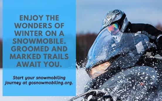 Snowmobiling has a way of bringing people together and bridging communities. There’s no better way to get the most out of winter. Spend time with family and friends, explore new places, and experience nature’s beauty. You’ll see winter in a whole new way … all from your snowmobile. Winter’s more fun on a snowmobile. Find out more at www.gosnowmobiling.org.