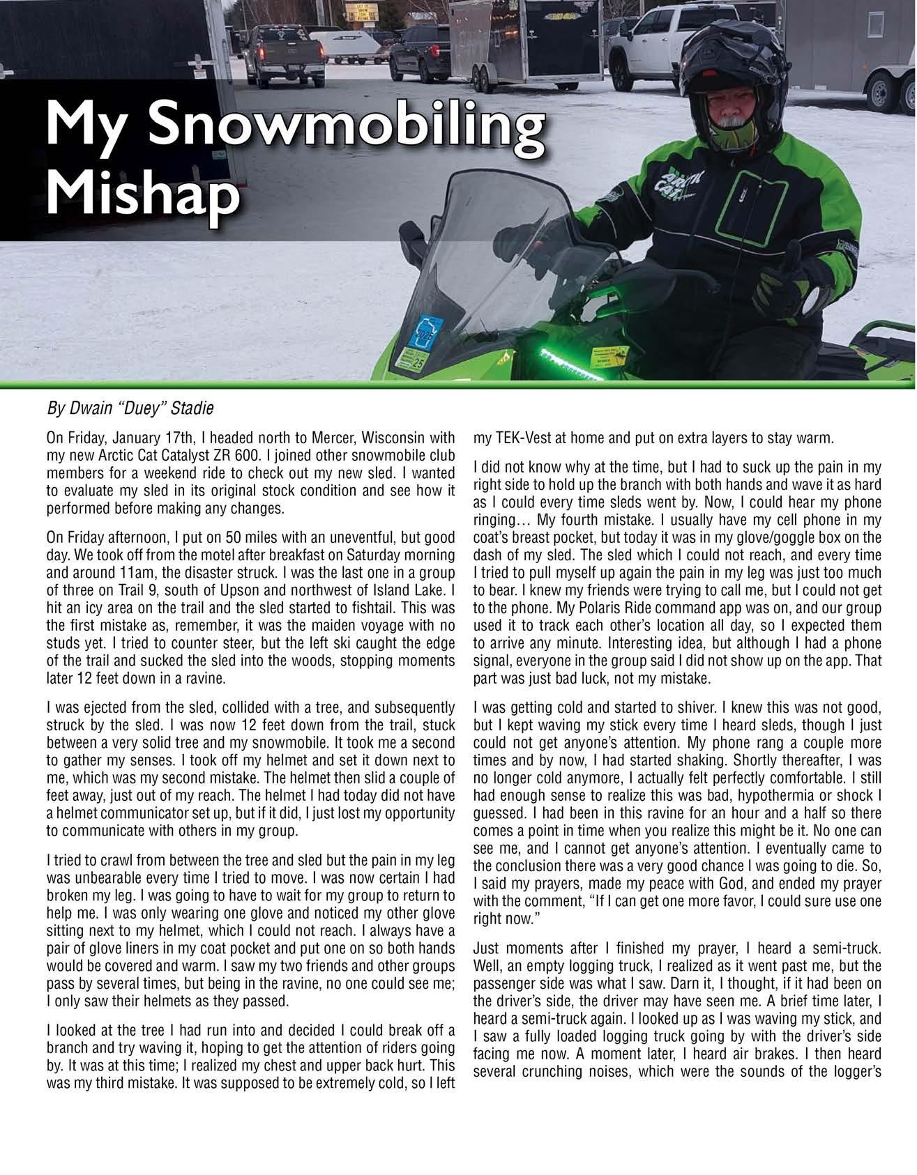 Dwain Stadie recalls his horrifying snowmobiling accidents and the important lessons he learned along the way.