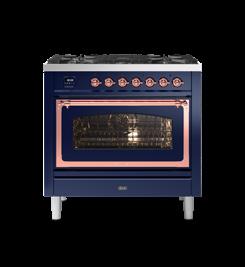↑ medNostalgiePD10SQNE3/MGPspis100cm4brännareochcoupe de feu. Grafit matt med kopparbeslag. → NostalgieANB100/MGPfläkt 100 cm. Grafit matt med kopparbeslag. ILVE Nostalgie