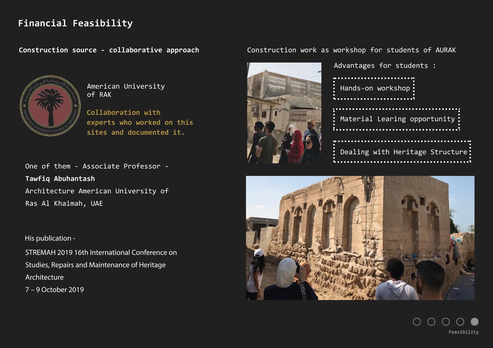 The project delves into the historical significance of coral stone houses within Arish architecture, with a focus on their preservation and minimal alterations. Furthermore, I placed a strong emphasis on actively involving the RAK women's community in construction and education, acknowledging their needs and recognizing the crucial role they play in safeguarding architectural heritage. I am also proud to mention that my work received recognition in this year's INTBAU Architecture challenge.