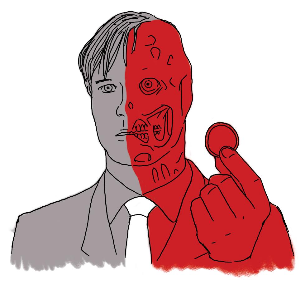 Menyaksikan kejatuhan Harvey Dent yang sebelumnya digadang-gadang Akan menjadi “pahlawan putih” kota Gotham, yang menghadapi dan menyelesaikan permasalahan gangster lewat cara yang legal/beradab, kemungkinan membuka pemaknaan yang berbeda-beda. Bisa saja kita mengapresiasinya sebagai bentuk penulisan naskah film yang apik. Meski tidak menutupi kemungkinan melihatnya sebagai refleksi kehidupan manusia yang umumnya dianggap berakhir tragis.