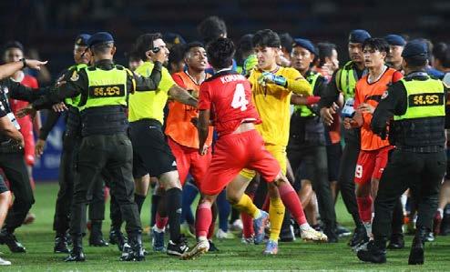 But the match will be remembered for the chaotic scenes that erupted in the 97th minute when Thailand – who had been down 2-0 – scored to make it 2-2 and force extra time.