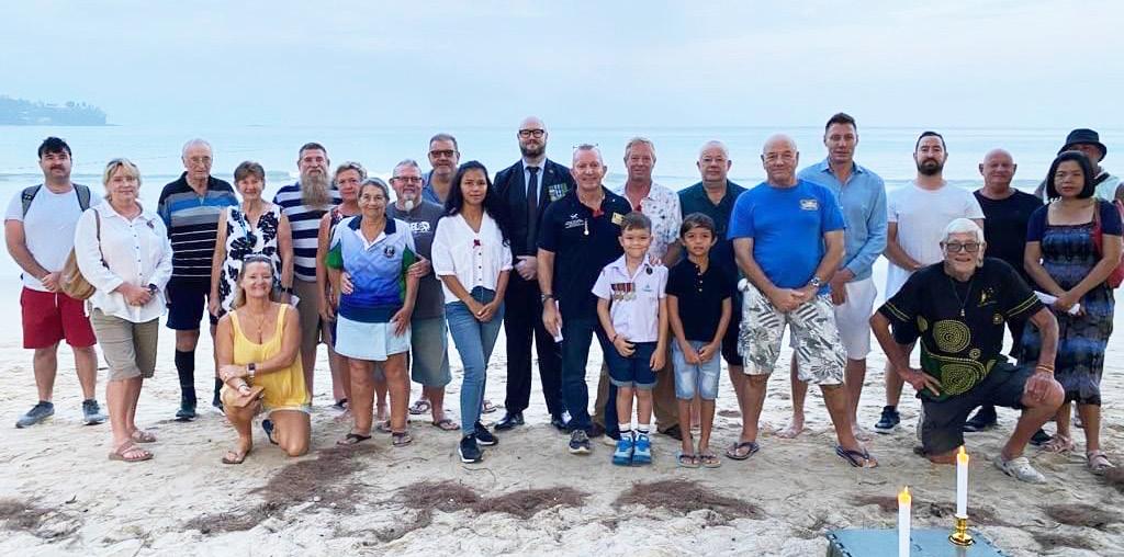 กลุ่มทั้หาร่ผู้่านศุ่กภูเก็ตร่วมต้วก้นเพื่อแสิ่ดงความเคาร่พื่ต่อผู้้�ล่วงล้บในงานว้น ANZAC ปร่ะจาป ซึ่งกิจกร่ร่มทั้คล�ายก้นน่ได�ถูกจ้ด
