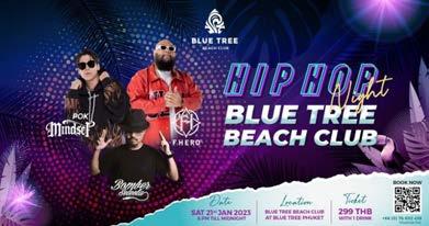 HIP HOP NIGHT AT BLUE TREE BEACH CLUB featuring F.HERO POK MINDSET DJ BOMBER SELECTA Hip Hop lovers don’t miss it! Get ready for a HUGE PARTY “HIP HOP NIGHT at BLUE TREE BEACH CLUB” featuring F.HERO, POK MINDSET and DJ BOMBA SELECTA with beach vibes and stunning views over Blue Tree Lagoon. It’s going to be an epic night. Saturday, 21 Jan 2023 at Blue Tree Phuket – kittikhuns@bluetree.fun, 076-602435.