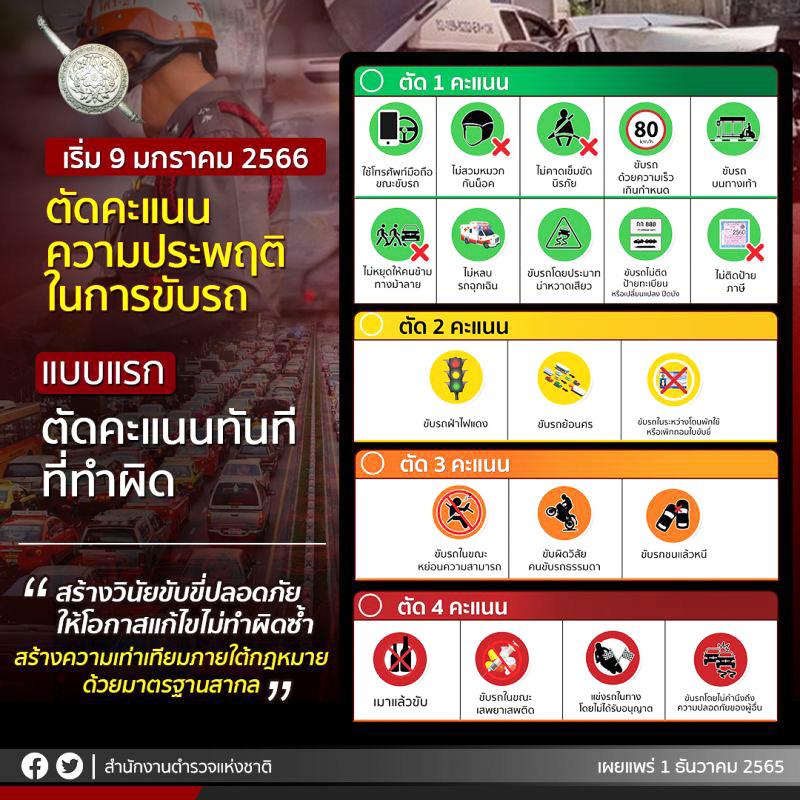 After more than a year in fine tuning, the points system to come into effect on Monday (Jan 9) was officially announced by national police chief Gen Damrongsak Kittiprapas and Land Transport Department Director-General Chirute Visalachitra on Dec 1.